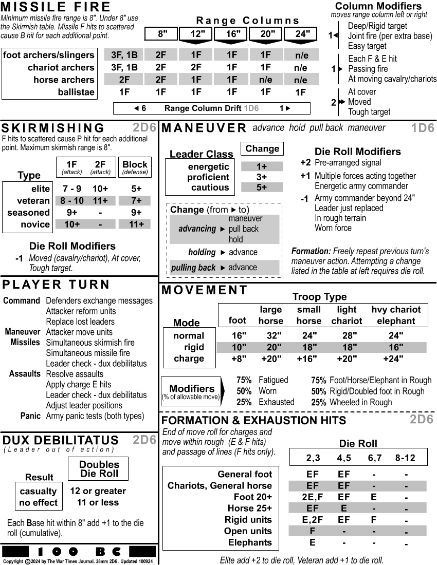 These rules (now just a combat chart and some supporting troop stat text) are extremely developmental and we encourage players to email comments and suggestions to webmaster@wtj.com. Last update: April 18, 2025.