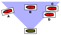 letting enemy vessels get within their rake zone. The rake zone runs diagonally