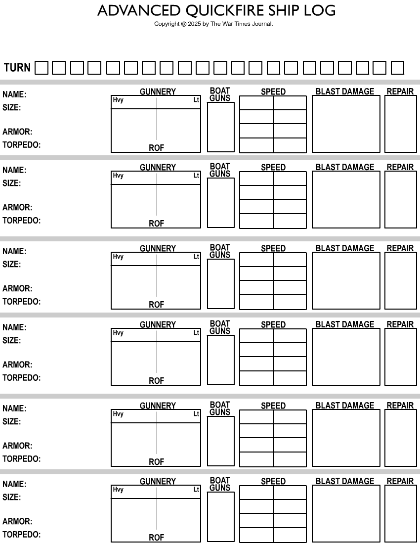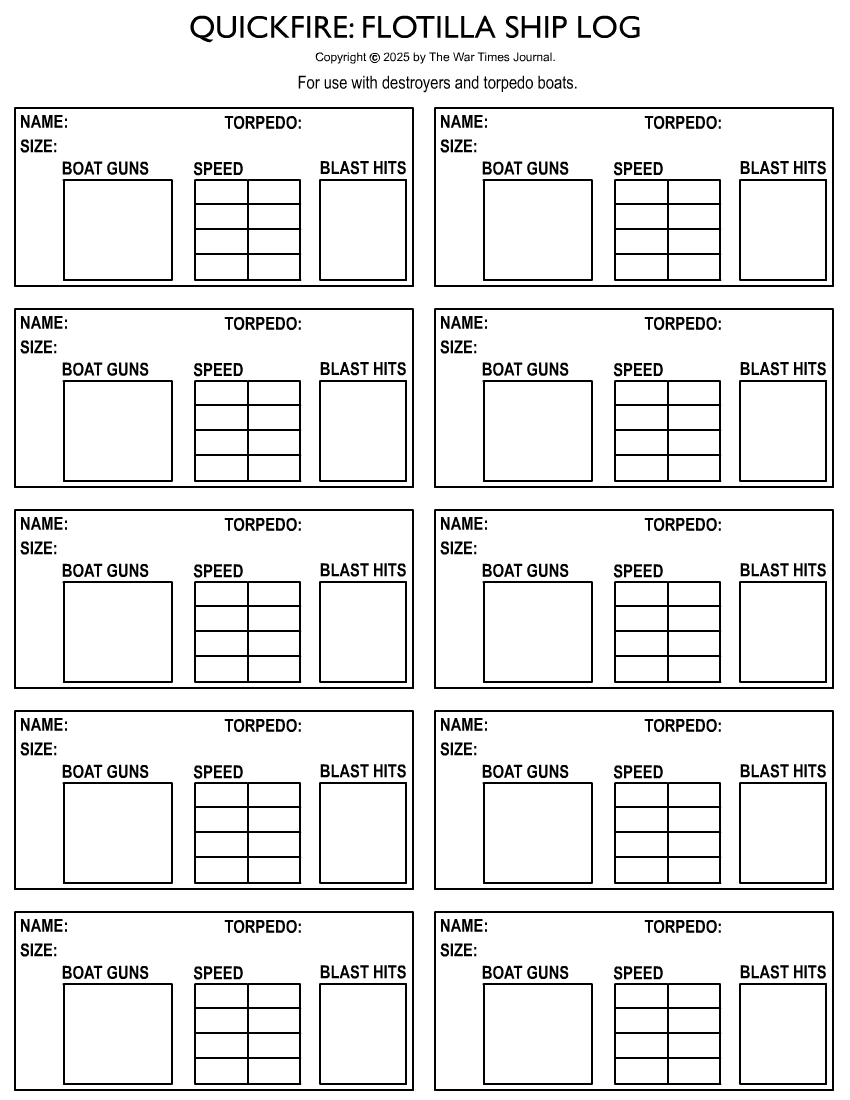 - 10 Boat Flotilla Log - A blank log for destroyers and torpedo boats