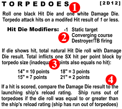 15" Torpedoes - Inflict one SX hit per 7 damage points.