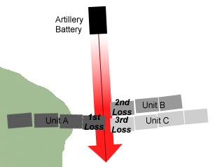 past the square. Unit B's assault on the infantry line is now modified by