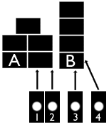 rule. Batteries 1 and 2 must fire on the left infantry unit A. Batteries 3 and