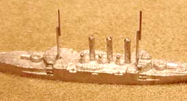 | Materials Photos There were many different mast configurations for ships of various periods, so it is best to have at least one photograph of the ship you want to customize. Other than on-line sources, the Conway's Fighting Ships series is the best single source of images as well as being a goldmine of information about the ships themselves. Rods & Wire The first and most important item to buy will be the rods or wire used for mast building. For the main vertical mast I use .020" styrene plastic rods made by Evergreen Scale Models. For the topmasts and spars I use 32 gauge Tie Wire like that used for floral arranging. If the only fine wire you can find is that wound in paper, the paper can easily be stripped away. Adhesive The best type of adhesive to use is Loctite brand Superglue Gel, especially in the "Control" bottle. I previously used Advanced Formula Krazy Glue, but the new (as of late 2005) Superglue seems to work much better. Tools For clipping wire, the best tool to use is a nail clipper because of its ability to shear a clean, flat end on the wire. Using diagonal cut pliers is not as good because of the V-shaped tip it leaves after cutting. Also required will be a pair of wide tweezers for holding the wire pieces in place while the instant glue hardens. MastsI like to use styrene plastic for the main vertical mast because the completed mast assembly will flex slightly if bumped, thereby helping to prevent unwanted breakage. If the "Flexmast" does indeed break, it is easily glued back or replaced by another length of mast. The first step in mast building is to make sure the ship casting is clean and free of any primer coating. Make sure your mast segments are pre-cut and ready for gluing, and have a small flat of aluminum foil with a bit of SuperGlue squirted onto it. Grasping a mast with your tweezers, dip one end in the glue - enough to leave a small blob of it on the end of the mast - and then quickly but firmly plant the glued mast-end onto the ship's deck. WTJ Naval miniatures usually have small dimples in their decks in order to allow a pool of adhesive to form beneath the mast, making for a firmer bond (the dimples also serve as center-drill points for those who want to drill holes for ultrasolid mast building). It is usually better to install main vertical masts which are taller than required. The masts can be trimmed to length after the adhesive dries. Once the main vertical masts are installed and trimmed, the topmasts need to be installed. Using the same general method as above, grasp the pre-cut topmast segments (which will usually be 30 or 32 gauge wire) and dip the side of the wire at one end into the SuperGlue. Quickly and gently hold the wire against the existing upper side of the main vertical mast for several seconds. You will need to make sure the topmast is being held vertically and not at an angle to the main vertical mast. Lightly blowing on the bonding area probably helps. Once the glue seems to be taking effect, let go with the tweezers and manually do any quick, last second adjustments that might be necessary. As with the main vertical masts, installing long topmasts and then trimming them to length is usually best. The image above right shows a rough casting of the Japanese cruiser Idzumo with her main vertical masts and top-masts in place. Note that most top-masts were attached to the front of the main masts. This model does not yet have any spars installed. SparsSpars are the cross-beam type structures that rest across the masts. They will almost always be made of 32 gauge wire. As with the masts, grasp a pre-cut spar segment and dip the middle of it into a tall, slender glob of SuperGlue (the superglue gel is easy to pile up). Then hold the spar against the appropriate position on the mast until it has set. As with the topmasts, you may need to let go of the spar before the glue has fully set in order to make some quick adjustments. If the glue sets firmly with the spar slightly askew, let everything dry completely and then use two pairs of tweezers to trap and bend the spar lengths into position. The glue is so strong that it will usually accommodate such prying. At left is a photo of the Spanish battleship Pelayo with a full set of topmasts and short spars. Tips and Hints Make sure the tip of the wire does not have oil from your hands on it. The contamination may weaken or prevent the adhesive bond. Sometimes you may tack an item in place and then add a heavier layer of glue to strengthen the bond. If a section of mast breaks off of a ship that has already been painted, you may very well be able to glue the mast right back into position. The styrene bonds readily to itself or the pewter casting. If you accidentally primer a model before trying to glue masts into place, the glue will not stick. However, you can use a first round of gluing to pull away the primer, thereby leaving a small spot for the mast to be attached. You may want to use a kind of jig for attaching topmasts by cutting a notch into a piece of heavy balsa wood. By using the block of balsa as a kind of bridge over the model, hold the topmast wire against it and then slide the entire setup until the topmast wire is against the main mast. This may allow for a more stable installation of topmasts. |